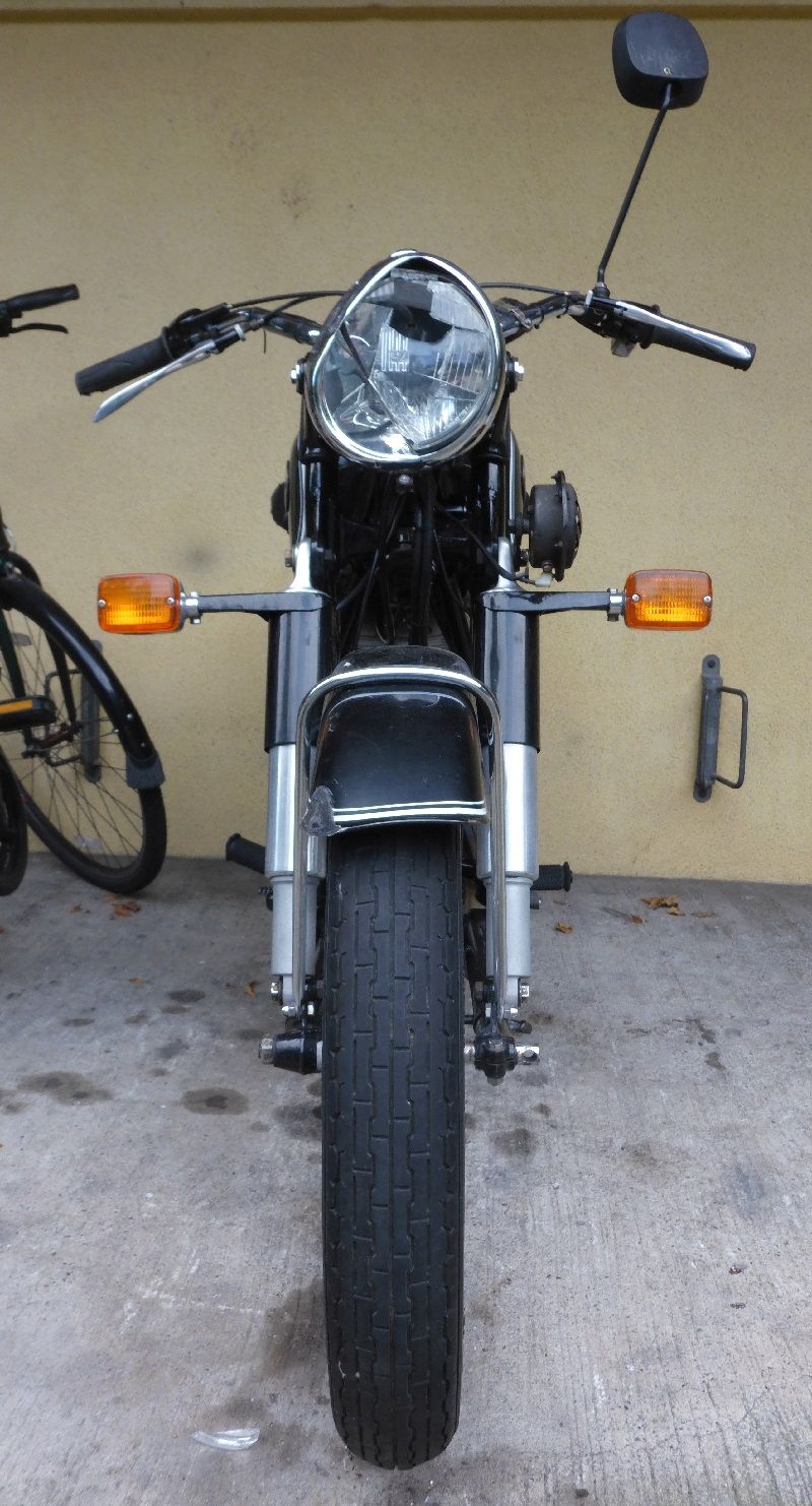De face, on constate les dégâts au phare, au garde-boue avant, ainsi qu'au repose pied droite.
