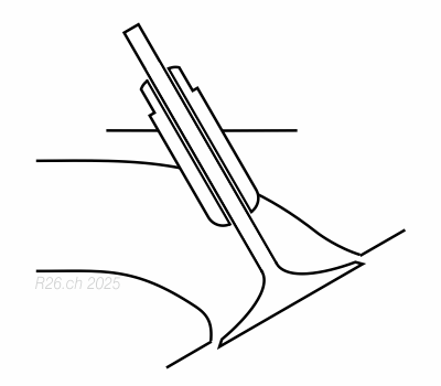Au remontage, la soupape doit être glissée délicatement dans son guide, car si les queues de soupapes ont généralement un chanfrein, c'est rarement le cas des gorges pour les clavettes qui, elles, sont souvent très angulaires. Et par là, elles pourraient endommager la lèvre intérieure du joint SPI.